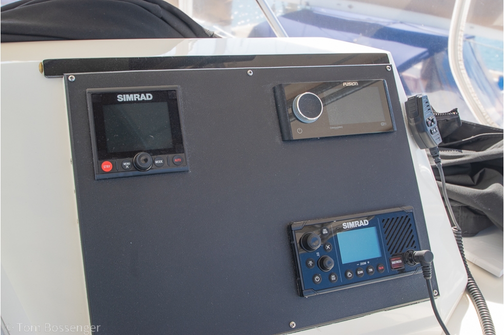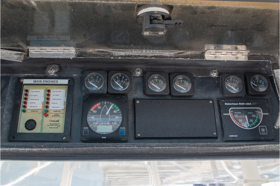• Simrad autopilot, VHF radios, wind indicator, and rudder angle indicator