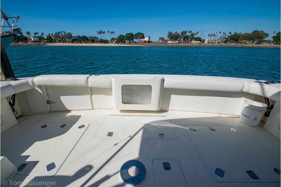 • Glassed-in bait tank, kill box, and full bait prep station with sink and cutting surface